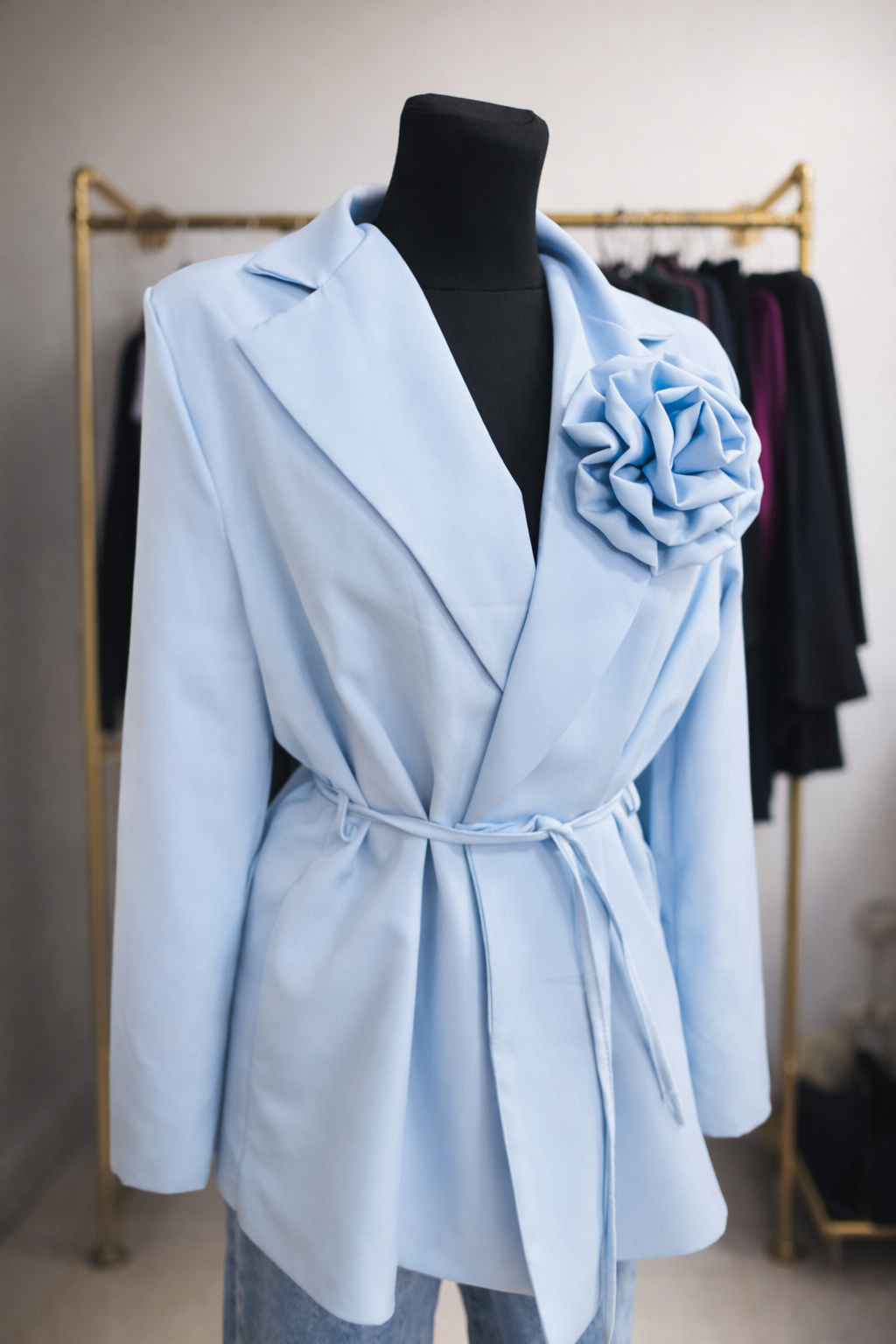 Marynarka damska Żakiet z kwiatem baby blue