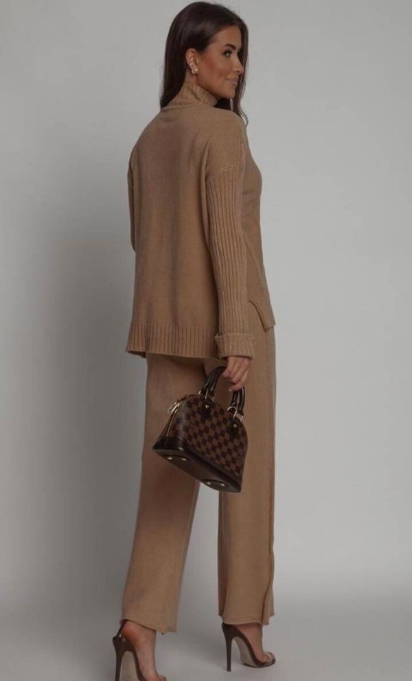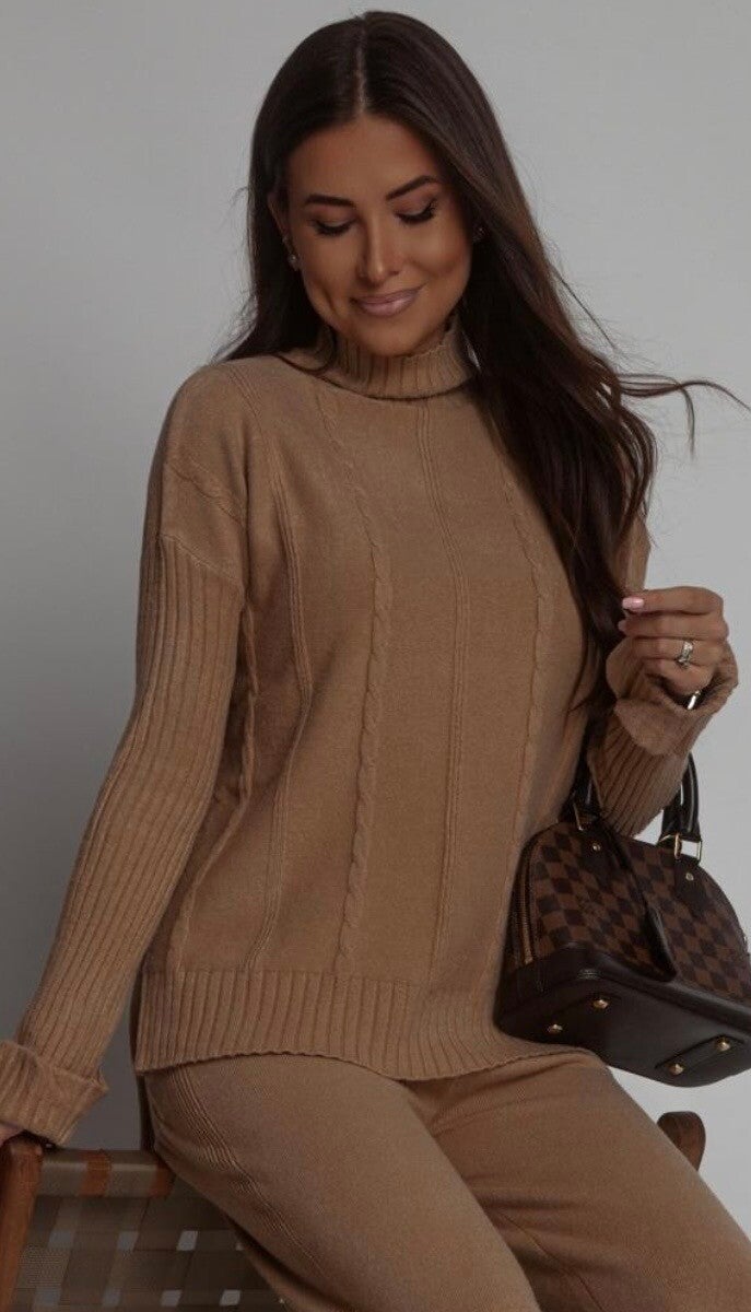 Komplet składa sie ze sweterka i spodni. Rozmiar S, wykoany z wiskozy.