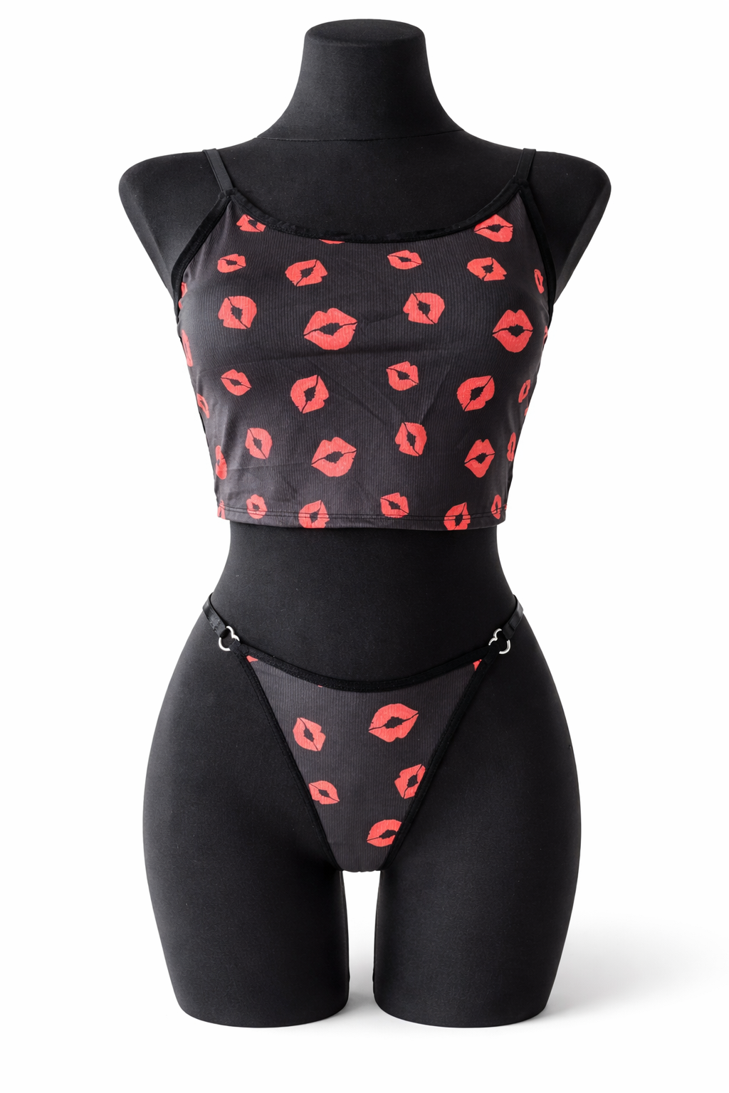 Komplet bawełnianej bielizny składający sie z koszulki i majteczek typu stringi, ozdobione metalowym serduszkiem. Rozmiar S/M.