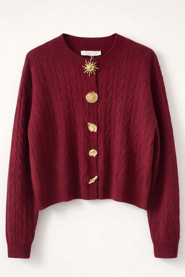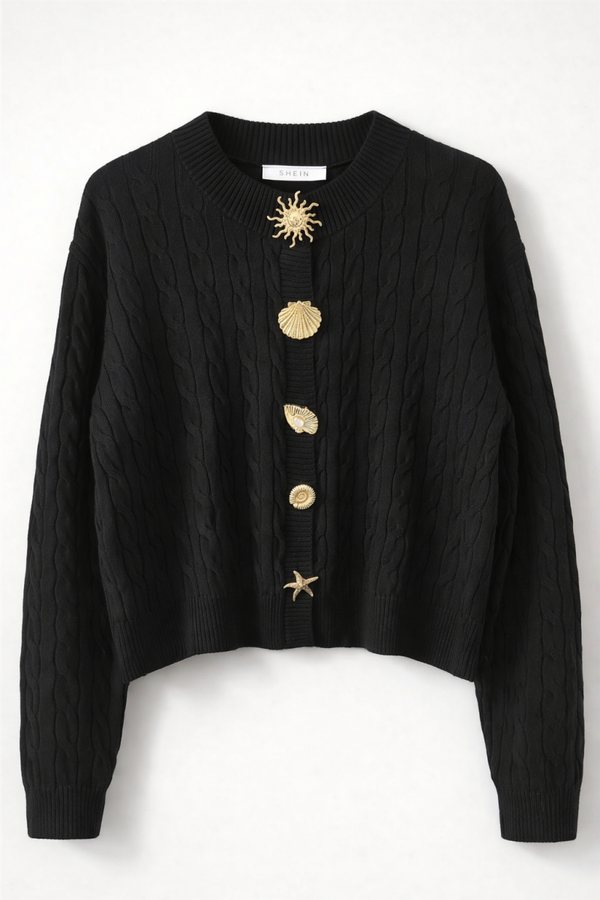 Ozdobne guziki, piękny splot. Zapinany na zatrzaski, rozmiar z metki S/M 56,5 cm x 2 obód , długość 50 cm.