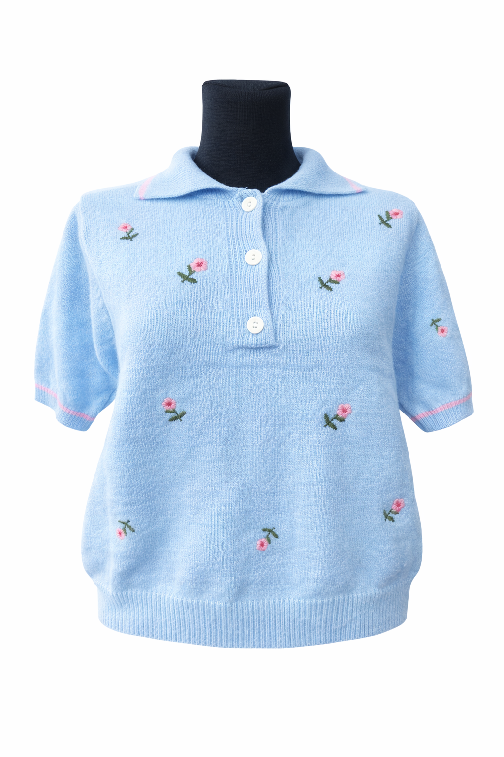 Przepiękna bluzeczka z wiskozy, ozdobiona kołnierzykiem. Zapianana na guziczki, całość wyszywana w piękne kwiatuszki.