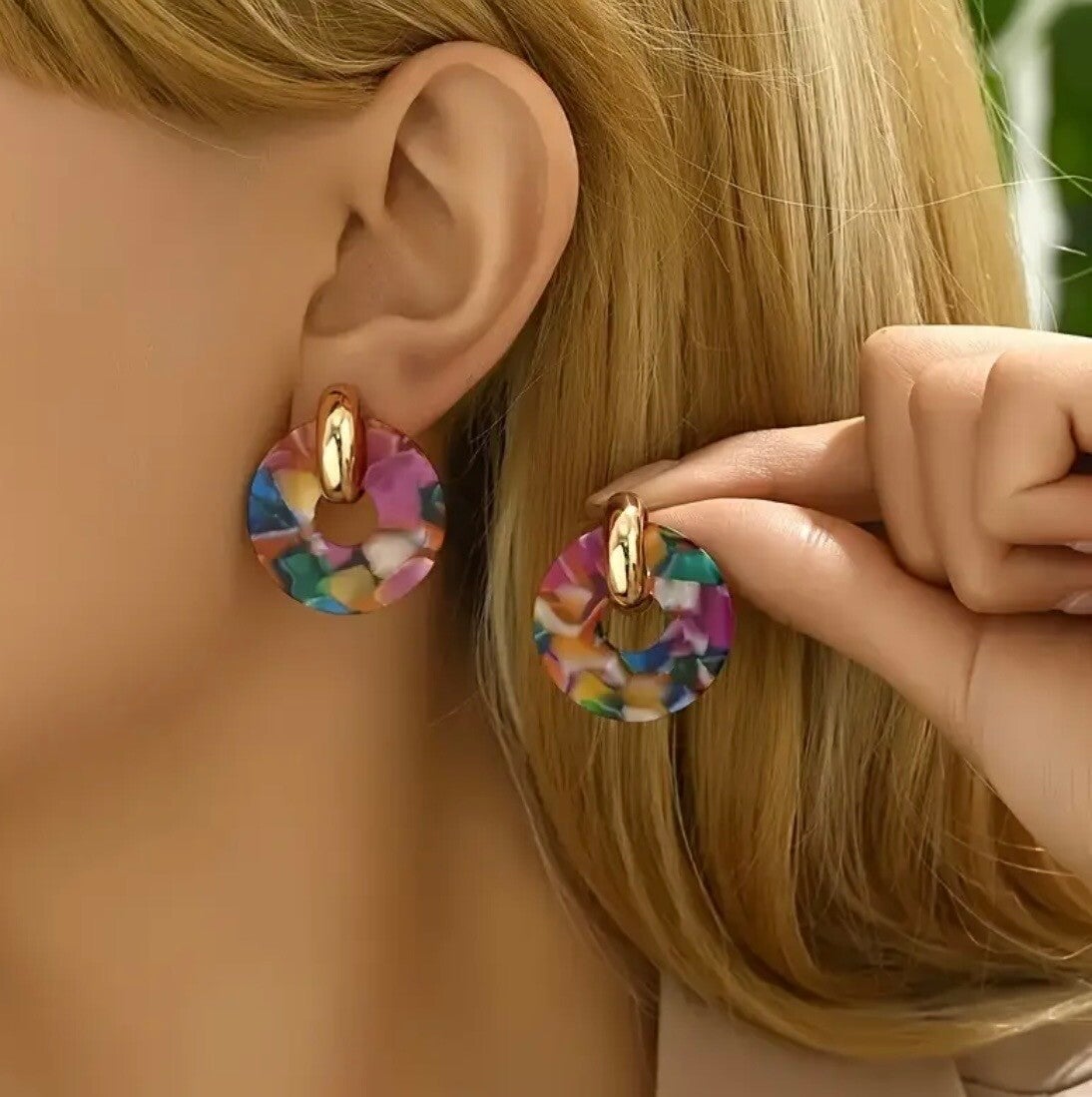 Kolorowe kolczyki wykonane z żywicy w połączeniu ze złotym ackcentem dodadzą wyrafinowania Twojej codziennej stylizacji. Odpowiednie zarówno na większe i mniejsze wyjścia.