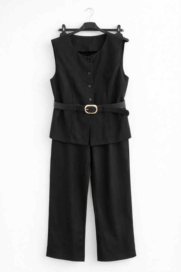 Całość prezentuje się minimalistycznie, nowocześnie i bardzo stylowo — idealny zestaw zarówno do biura, jak i na eleganckie wyjścia. Można go nosić w komplecie lub łączyć osobno z innymi elementami garderoby.