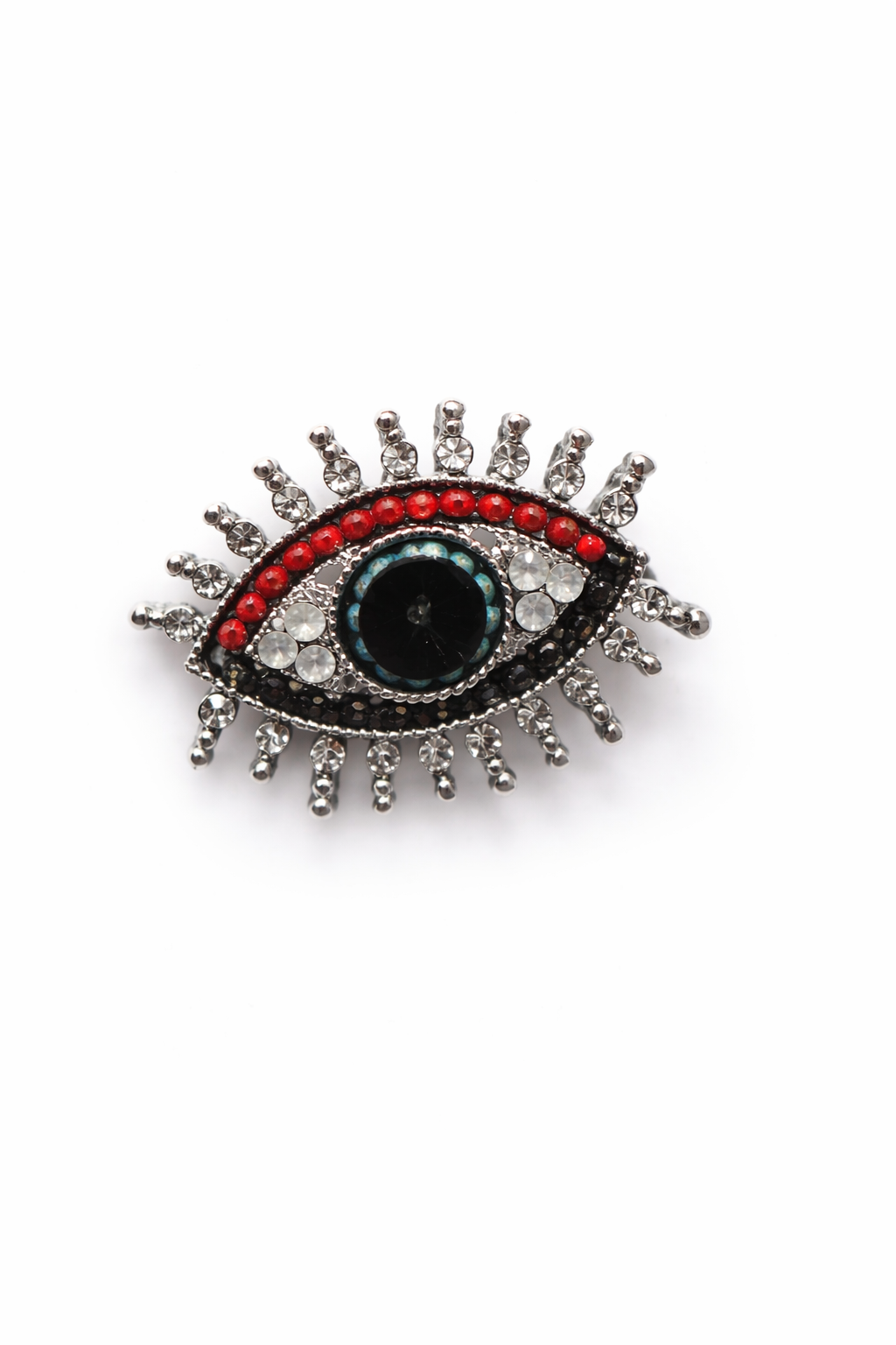 Stylowa broszka w kształcie oka, ozdobiona błyszczącymi kryształkami i cyrkoniami. Bardzo efektowny dodatek, który przyciąga uwagę i nadaje charakteru każdej stylizacji.